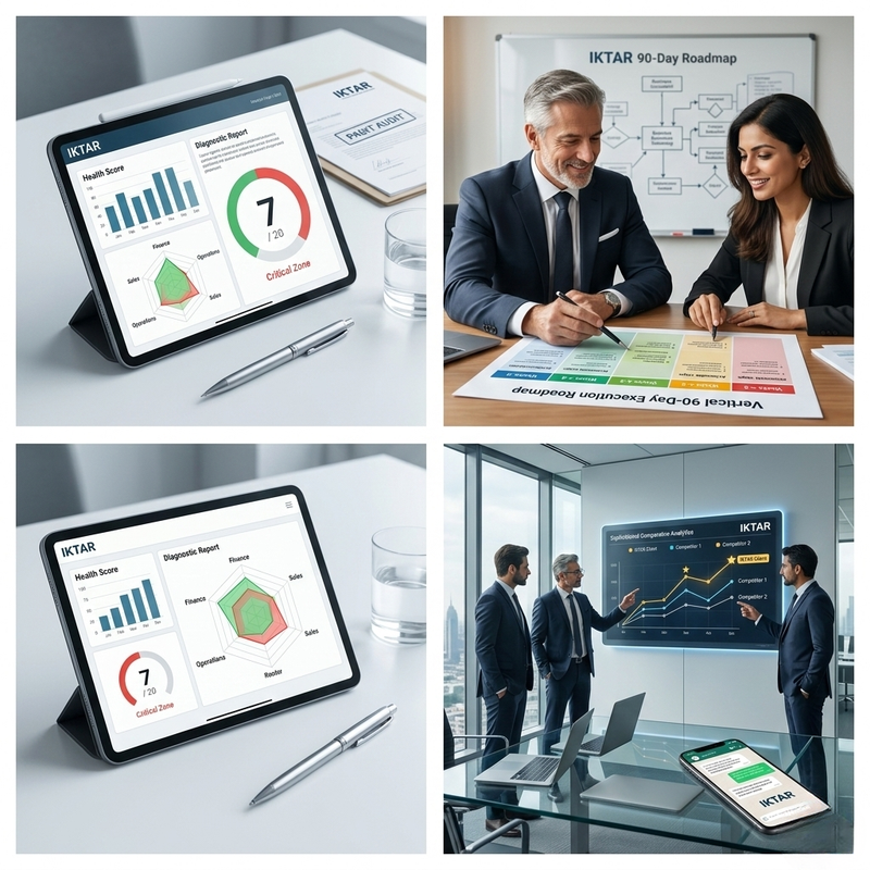 Most businesses lose 40% of their potential to hidden operational friction. The IKTAR 360° Business Health Scan™ uncovers these leaks and converts them into measurable growth with a clear, 90-day execution roadmap.